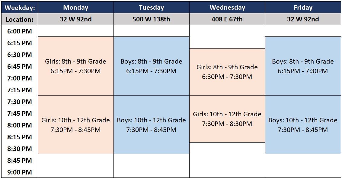 - 8th - 9th Grade; 6:15PM - 7:30PM