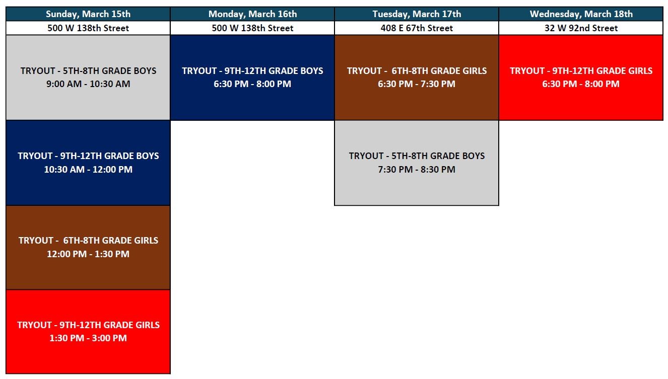 Sun, March 15th: 9:00-10:30AM @ 500 W 138th St